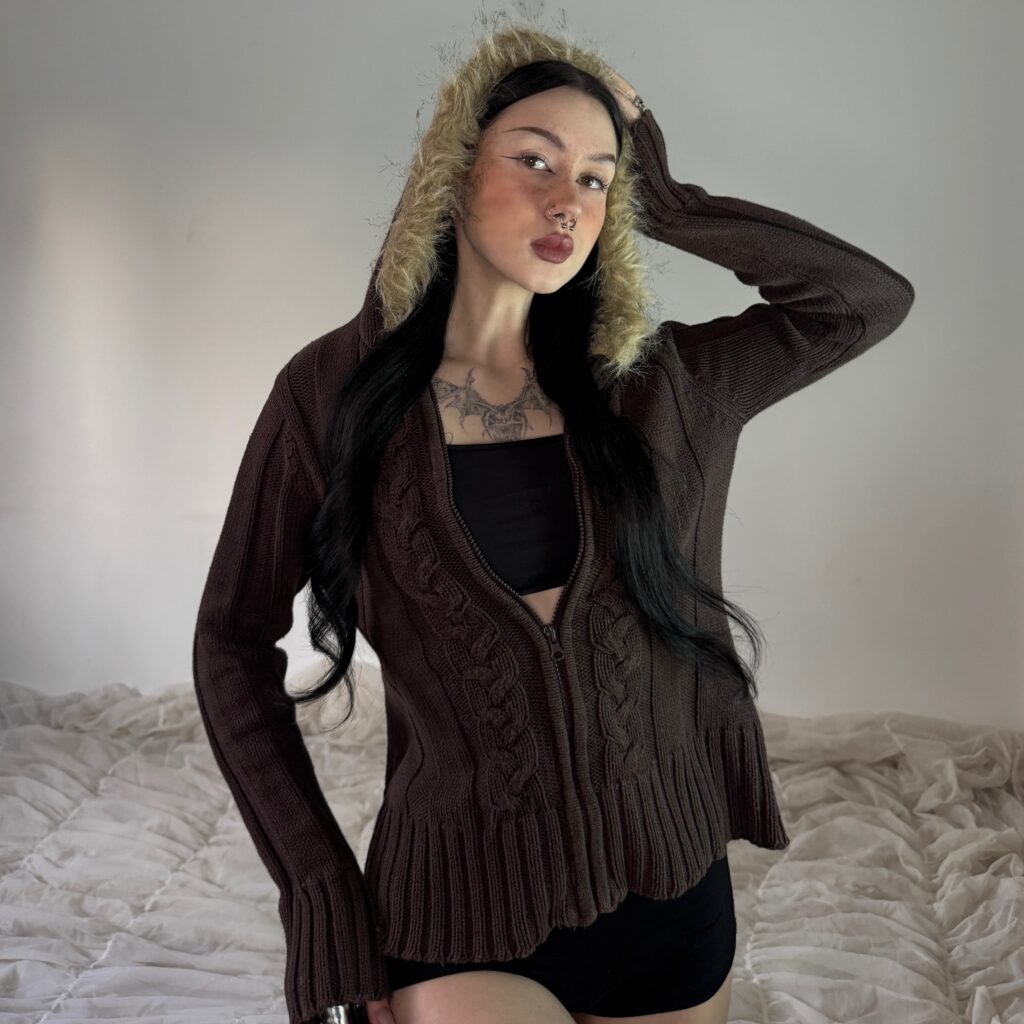 - Modelka měří 165 cm a její konfekční velikost je XS
